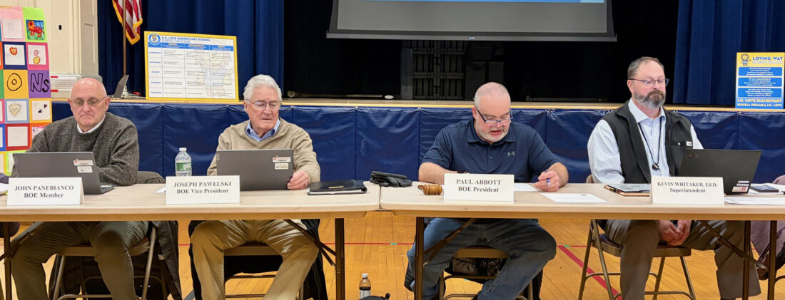 - From left, Jamestown Public Schools Board of Education Member John Panebianco, Vice President Joe Pawelski, President Paul Abbott, and Superintendent Dr. Kevin Whitaker conduct business during a meeting Tuesday at Love Elementary School. P-J photo by Michael Zabrodsky