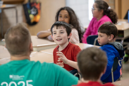 The class getting excited to ask questions during the volunteer’s presentation. Submitted photo