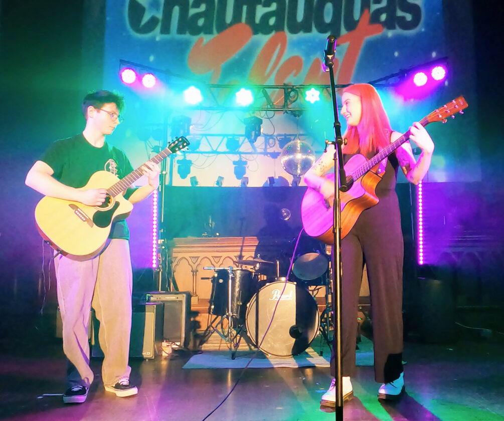 - From left, Jeremy Bunce accompanies Eden McNitt during the first night of Chautauqua’s Got Talent at The Spire Theater, 317 E. Third St. Submitted photo