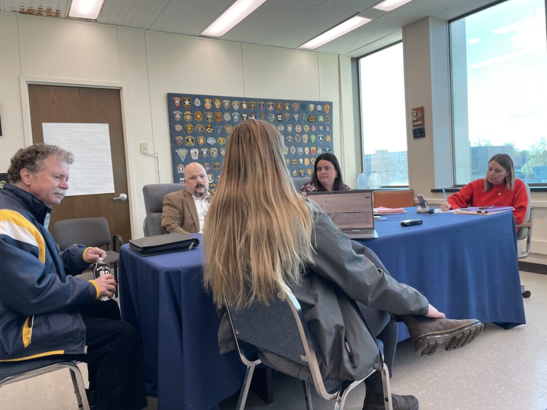 Deputy Development Director, Kasie Foulk, updates the housing committee on a property on Front Street. P-J photo by Sara Holthouse