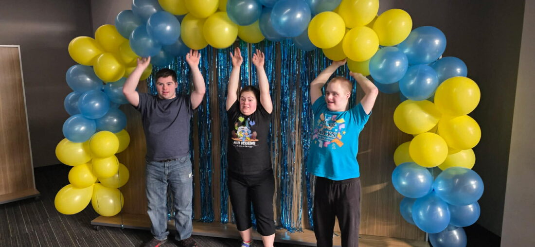 - Participants from the World Down Syndrome Day event pose under the balloon display. Photos submitted by Amy Pembridge