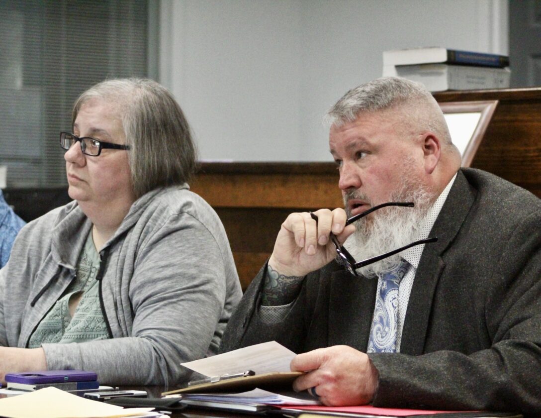 Town Board member Tammy Thompson, left, and Supervisor Rich Lewis, right, listen to public comments about a potential data center to be located at the former Sugar Hill Golf Course. P-J photo by Braden Carmen