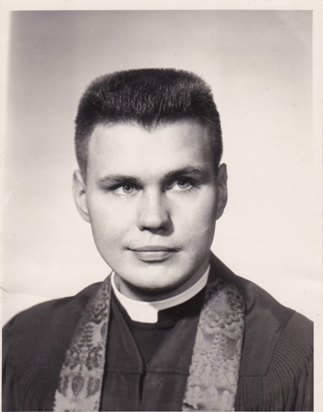 Ken graduated from Augustana Theological Seminary in May 1956, where he was also ordained. During seminary, he served as student pastor in Stratford, Iowa and Stronghurst, Ill.. Interned at Emmanuel and Messiah Lutheran Churches. He was a seminary pastor at Messiah Lutheran in Assiniboia, Sask, Canada. Parishes he served included, Advent Lutheran Church in Wyckoff, N.J., Mamrelund Lutheran Church, Kent City, Mich,, Tabor Lutheran Church, Chicago, Prince of Peace Lutheran Church, Freeport, Ill., Calvary Lutheran Church, Moline, Ill., and Zion Lutheran Church, N. Henderson, Ill. He also served interims including Ophiem, Manlius, 2 churches in Chicago, and Pearl City for two years.