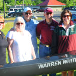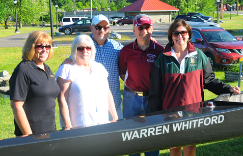 - Family and friends of the late Warren Whitford pose with the boat dedicated in his memory at the Chautauqua Lake Rowing Association season-ending picnic last week. From the left are Karen Whitford, Jackie Thies, Mike Brunner, CLRA high school program coordinator and coach Jim Odrzywolski and Sue Whitford Brunner. P-J photo by Scott Kindberg