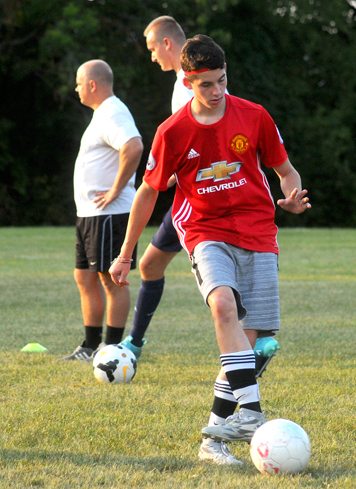 - New Southwestern boys soccer coach Jason Deering led the Trojans through their first practice of the season Monday evening. P-J photo by Cody Crandall
