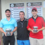 Jackson Valley Golf Club pro Eric Gurdack, center, is surrounded by the first- and second-place finishers at the 29th annual Jim Riggs Memorial Champions on Sunday. Representing Cardinal Hills Golf Course and Chautauqua Golf Club is winner Nolan Ditcher, left. At right is Blueberry Hill Golf Club’s Joe Nelson, who finished second. P-J photo by Scott Kindberg