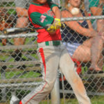 Mike Patric of the Jamestown Cal Ripken 11-year-old All-Stars fouls a pitch back during the Western New York State Tournament on Thursday night at Bergman Park. P-J photo by Scott Kindberg