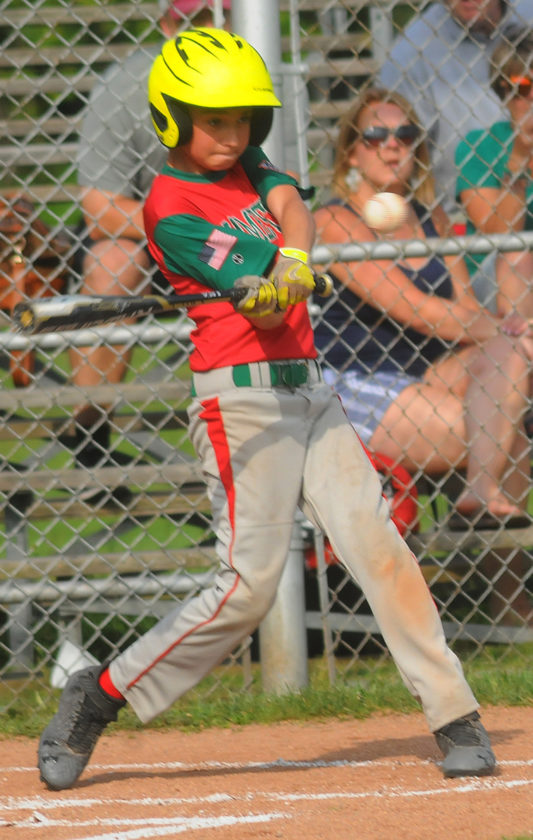 - Mike Patric of the Jamestown Cal Ripken 11-year-old All-Stars fouls a pitch back during the Western New York State Tournament on Thursday night at Bergman Park. P-J photo by Scott Kindberg