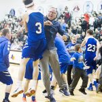 Dominic Spontaneo (3) celebrates the victory with assistant coach Chris Payne.