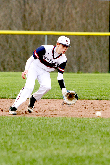 - The Thunderbirds’ Luke Waters scoops up a ground ball.