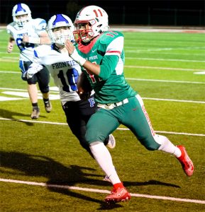 Frontier responded with a scoring drive of its own on its ensuing possession. Novak’s 55-yard run set up Monaco’s TD, and when Lippert’s extra-point try was good, the Falcons pulled even, 7-7, with 4:19 remaining in the opening period.