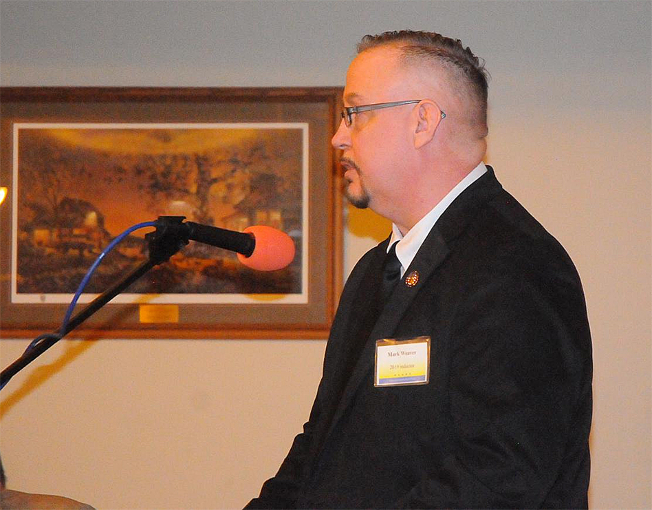 - Mark Weaver delivers his induction speech at the 2019 Chautauqua Sports Hall of Fame banquet in February. P-J photo by Scott Kindberg