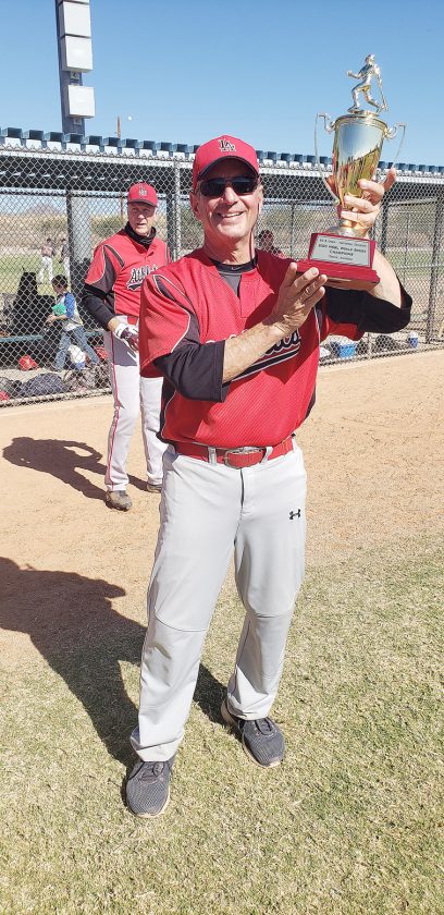 - Charlie LaDuca poses with the championship trophy from the Men’s Senior Baseball League’s 65 & Over National Division World Series, which he won last month in Phoenix, Arizona. Submitted photo