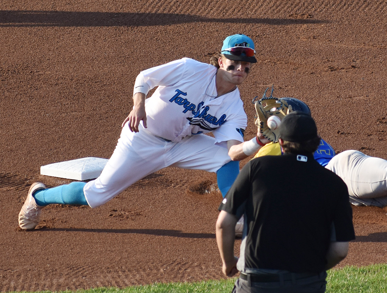 Jamestown second baseman Mark Tucker receives a throw. P-J photo by Scott Kindberg
