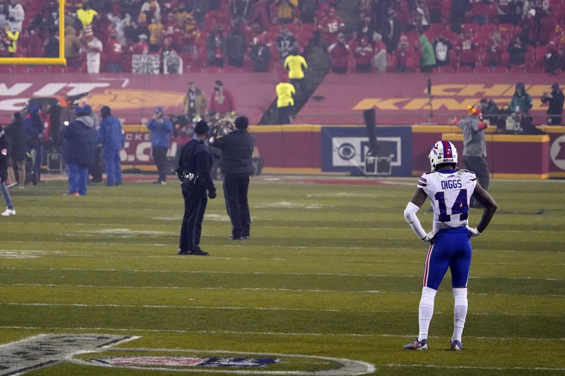 ORCHARD PARK (AP) — After most of his teammates had long retreated to the locker room, Bills receiver Stefon Diggs lingered at midfield, hands on hips, watching a mob of people surrounding members of the newly crowned AFC champion Kansas City Chiefs celebrating in the end zone.