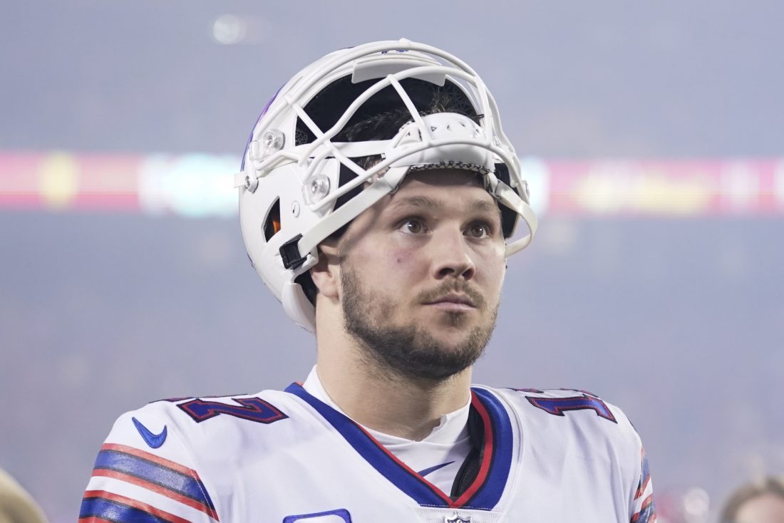Buffalo Bills quarterback Josh Allen walks off the field after a playoff football game against the Kansas City Chiefs on Sunday in Kansas City, Mo. The Chiefs won 42-36 in overtime. AP photo