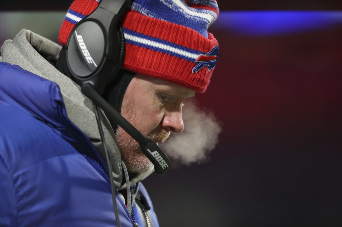 Buffalo Bills head coach Sean McDermott works the sidelines during the second half of last week’s wild-card game against the New England Patriots in Orchard Park. AP photo