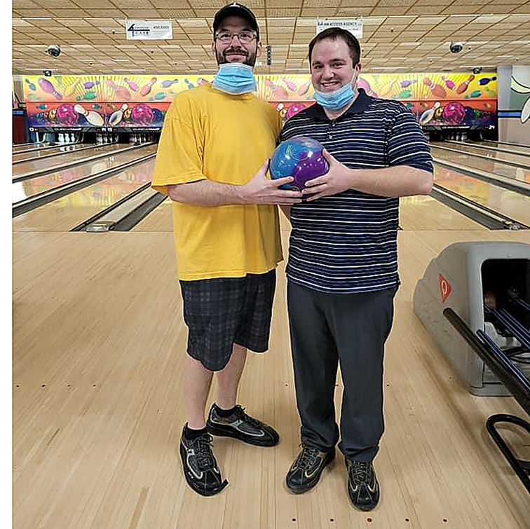Ryan Colburn, left, and Andy Blasdell had plenty to smile about after they each rolled a 300 game en route to 800-plus series in the Classic Doubles League at Jamestown Bowling Company on Thursday. Photo courtesy of the Jamestown Bowling Company Facebook page