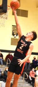 - Maple Grove’s Jake Vaillancourt scores an easy bucket in a Section VI Class C prequarterfinal basketball game against Silver Creek on Wednesday. P-J photo by Christian Storms