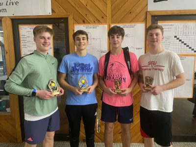 - Pictured, from left, are: Will Strassburg, Logan Fincher, Mark Lynds and Owen Strandburg. Strassburg and Fincher beat Lynds and Strandburg in the High School Boys Doubles final.
