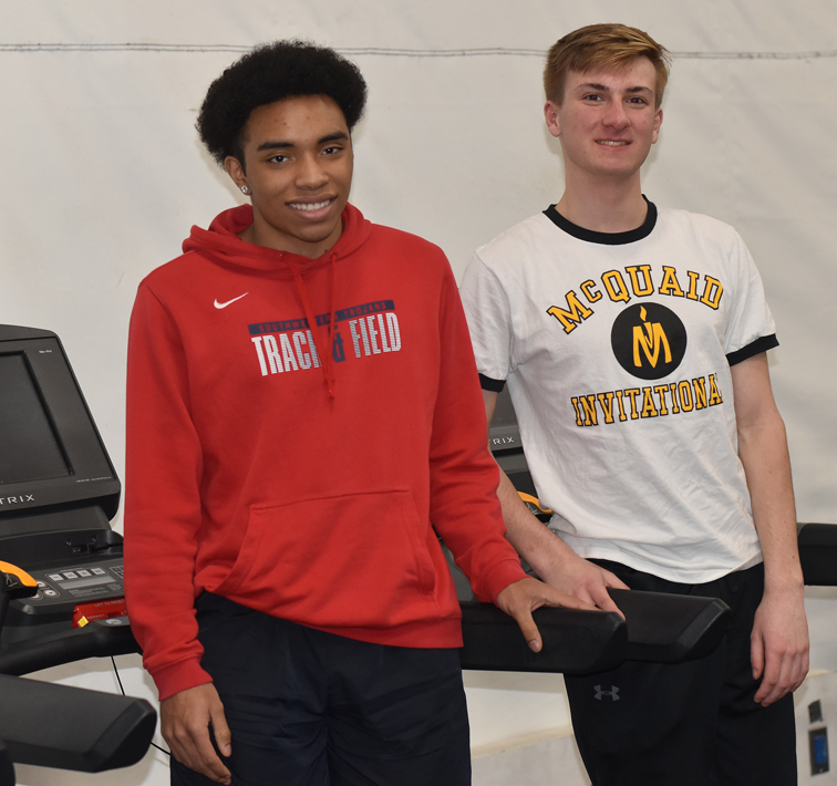 Michael Butterfield, left, and Trenton Shutters will compete in the USA Track & Field Indoor National Championships this weekend at the Ocean Breeze Track & Field Facility in Staten Island. P-J photo by Scott Kindberg