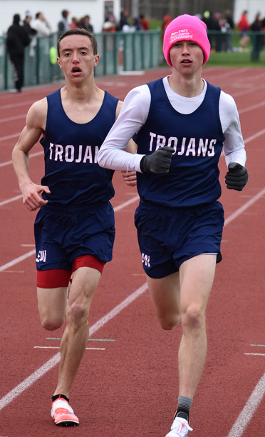 - Southwestern’s Ethan Luce, left, and Nate Lewis compete in the 1,600 meters. P-J photo by Scott Kindberg