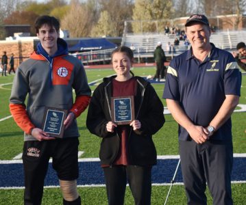 Southwestern had quite a unique turn of events in the steeplechase when siblings Emma and Nate Lewis both set new school records. Emma, only a seventh-grader, placed second in the 2,000-meter steeplechase with a time of 7:28.36, while Nate, a junior, turned in a winning time of 10:05.06 in the 3,000-meter steeplechase.