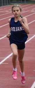 Highlighting the Trojans’ win in the girls meet were three wins by Emma Lewis in the 800 meters (2:36.7), the 1,500 meters (5:07.23) and the 3,000 (11:30.1).