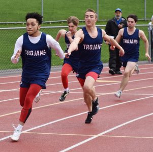 In the boys meet, Michael Strong-Butterfield doubled in the 100 meters (11.1) and the 200 meters (22.7) for the Trojans while teammate Dontae Hoose claimed the shot (41-5) and the discus (110-10).