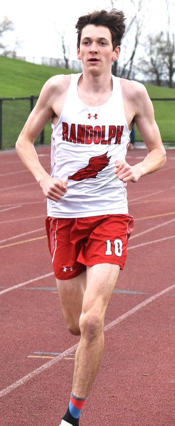 Randolph’s Roan Kelly leads the way in the 800 meters. P-J photo by Christian Storms