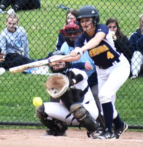 - Frewsburg’s Jacey Cappa attempts a bunt during Wednesday’s game. P-J photo by Christian Storms