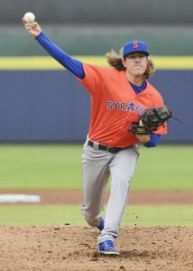 Starting for the first time in Buffalo, just 75 miles from home, the 6-foot, 180-pound right-hander matched Bisons left-hander Nick Allgeyer zero for zero through the first five innings.