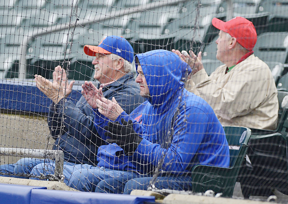 - Connor Grey’s family roots for him from seats next to the Syracuse Mets’ dugout at Sahlen Field in Buffalo on Thursday. P-J photo by Scott Reagle