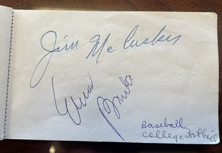 - Autographs from baseball Hall-of-Famer Ernie Banks; and Jamestown’s own Jim McCusker, who was then an offensive iineman at the University of Pittsburgh. Submitted photo