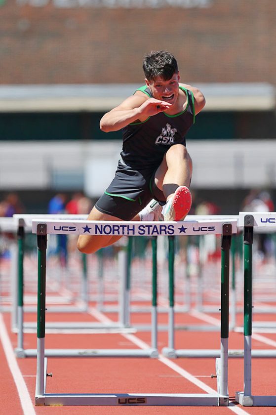 “We’re really happy with the way Gerald got started off,” added Shrout. “He ran a 15.77 in the 110 hurdles which is a personal best for him by about 0.25 seconds. He’s been pushing all year to break that 16, so he’s really happy with that. First time in the state meet, he’s really handling it super well — I’m impressed with how he’s handling things.”
