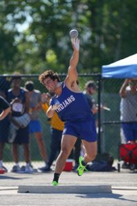 - Southwestern’s Dontae Hoose competes in the shot put at the state meet at Cicero-North Syracuse High School on Friday. P-J photo by Tim Frank