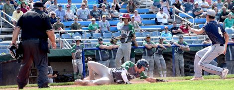 - Clymer/Sherman/Panama’s Kurtis Olson slides safely into home after a wild pitch during the Section VI Class D championship game against Franklinville late last month at Diethrick Park. P-J file photo by Matt Spielman