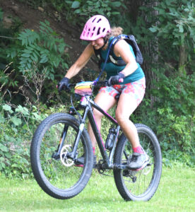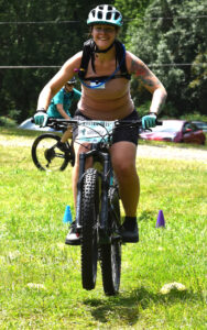 - Whitney McCabe traveled from Toledo, Ohio to participate in the Rooted Mountain Bike Festival in Maple Springs. McCabe, above, gets some air in the Introduction to Jumping workshop on Friday. P-J photo by Christian Storms