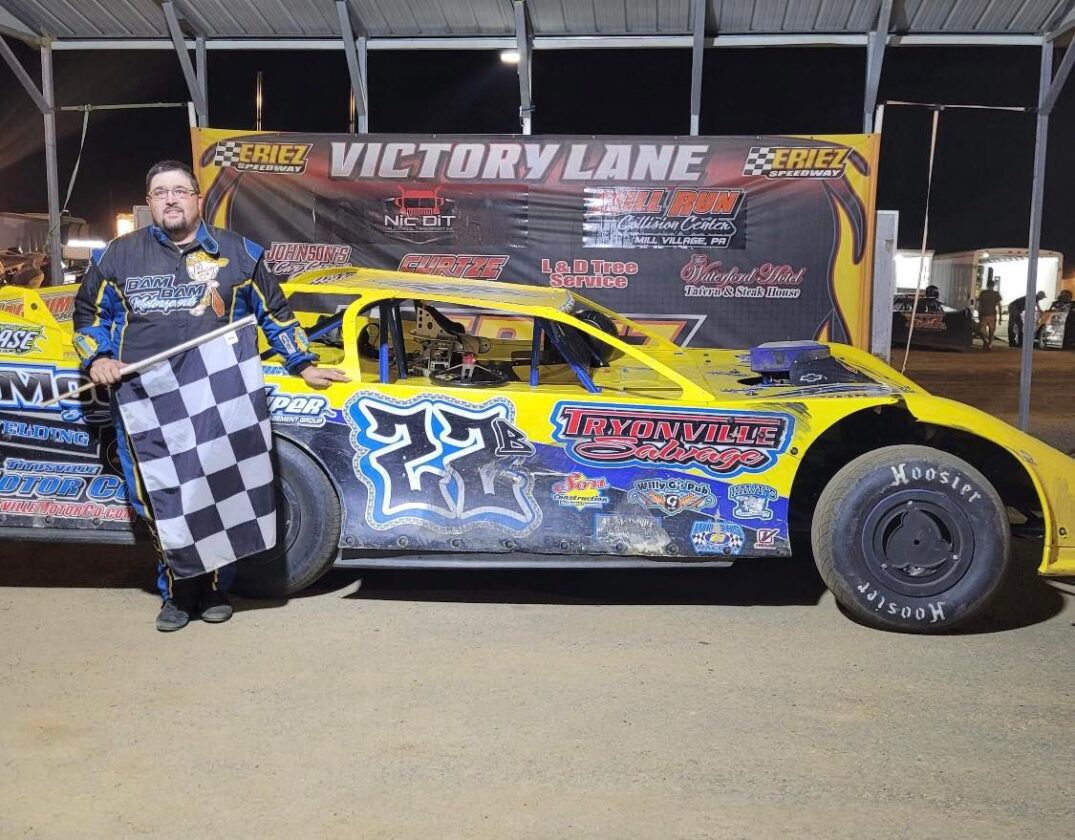 Darrell Bossard won the Super Late Model race at Eriez Speedway on Sunday. Submitted photo