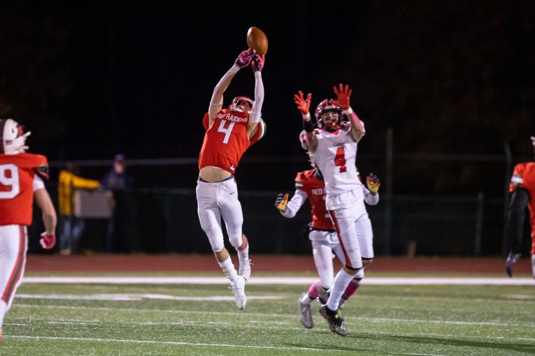 Red Raiders’ Michael Boron intercepts a pass. P-J photo by Tim Frank