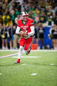 Drake, who has made a verbal commitment to North Dakota State University, has completed 159 of 266 passes for 2,315 yards, tossed 27 touchdown passes and been intercepted just once. The 6-foot-3, 205-pounder has also rushed for 252 yards and scored seven touchdowns; and punted seven times for a 35.6 average. The Red Raiders will play Hilton of Section V in the Far West Regional on Saturday.