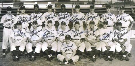 Above is the 1953 Olean Yankees team of the PONY League. Seated, second from left, is Bobby Richardson. Standing, at far right, is Chautauqua Sports Hall of Fame inductee Art Asquith. Photo courtesy of the Chautauqua Sports Hall of Fame