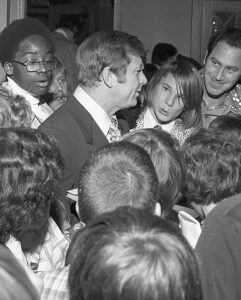 In this February 1976 file photo, New York Yankees’ great Mickey Mantle is surrounded by autograph seekers at the Temple Hesed Abraham Sports Night at the Hotel Jamestown. P-J file photo