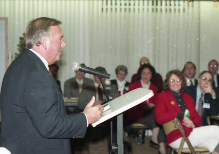 In this Dec. 4, 1995 file photo, former New York Yankee Bobby Richardson speaks at the Chautauqua Region Fellowship of Christian Athletes dinner at First Covenant Church in Jamestown. P-J file photo