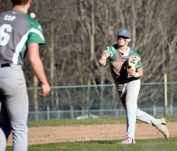 - Clymer/Sherman/Panama’s Gabe Roth throws a Silver Creek/Forestville runner out at the plate from his shortstop position during Monday’s nonleague game in Panama. P-J photo by Matt Spielman