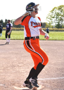 Fredonia (13-4) scored all of the runs it would need in the bottom of the first inning as the first seven batters all reached base. The Hillbillies opened with a single from Danielle Palisin that was followed by a Draggett RBI triple. Lucas then delivered the biggest hit of the game, sending a towering shot to right-centerfield which she managed to hustle around for an inside-the-park home run to take the 3-0 lead.