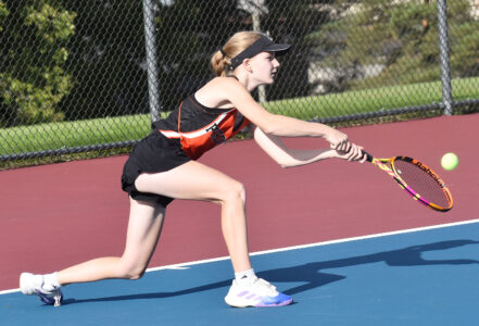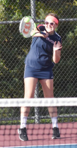 - Fredonia’s Nella Darrel-Sterbak hits a return. P-J photo by Scott Kindberg