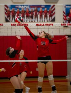 Harper Dawes had 12 kills and a block as Maple Grove outlasted Forestville for a 25-15, 23-25, 25-12, 20-25, 15-9 Division 2 West victory.