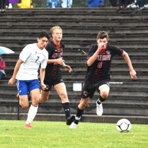 Westfield/Brocton opened the scoring when Swanson outran a slipping Maple Grove defender in the rain and finished off a breakaway for his 13th tally of the season. Then, just two minutes later, Ty Kraft cleaned up a tricky shot from DeMink that was initially saved, but slipped away from the outstretched keeper.