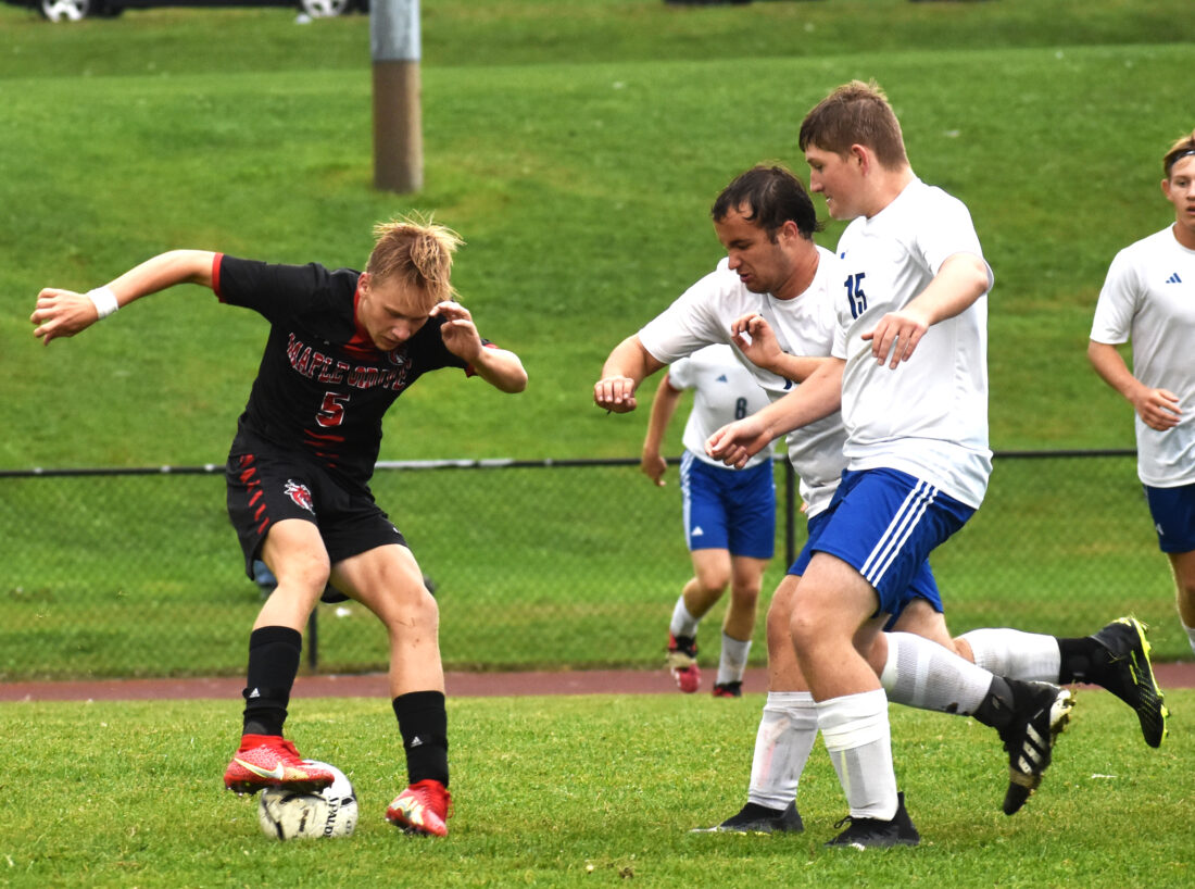 BEMUS POINT — With roughly 20 minutes left in the league opener between Westfield/Brocton and Maple Grove, the Wolverines new all-time leading scorer Carson Swanson stepped up to the penalty marker with a chance to regain the lead with the game tied at 2-2.